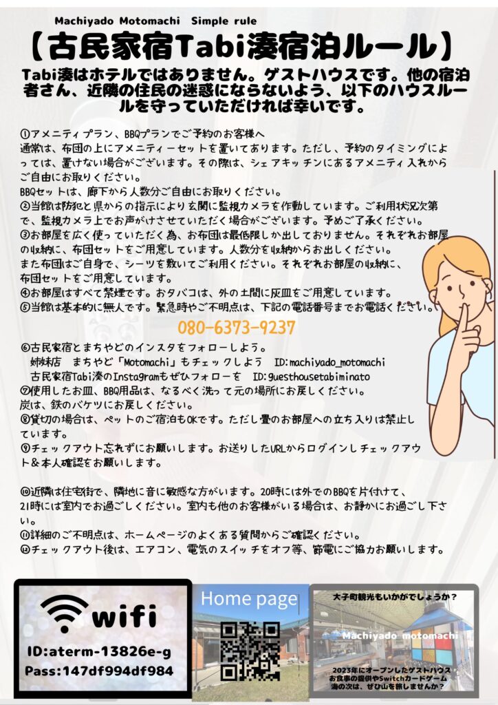 当宿は閑静な住宅街にある古民家ゲストハウスです。皆さまに快適に、そして近隣の方々とも良い関係で過ごしていただくために、以下のルールへのご協力をお願いしております。